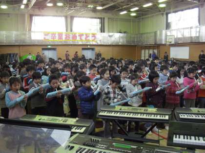 1年生から5年生までの在校生が、6年生に心を込めてのお礼の言葉と合唱や合奏で感謝の気持ちを表しました。
