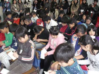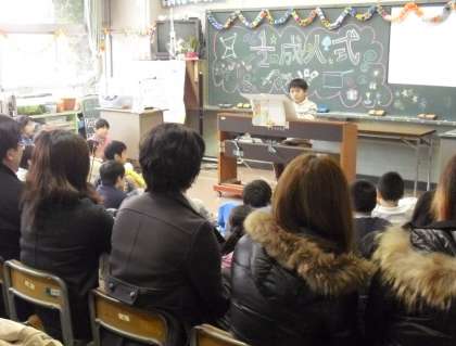 今日は4年生の1/2成人式がありました。子どもたち一人一人が、10歳になった自分たちを振り返るとともに、今までがんばってきたことを発表し、今までの自分とこれからの自分について改めて考える機会となりました。最後には、子どもたちには内緒で集めておいた、保護者の方からの手紙を読みました。「ありがとう」という言葉がいくつも書かれていて涙ぐんでいた子が何人もいました。心のこもった手紙をありがとうございました。子どもたちの心がぐんと成長しました。