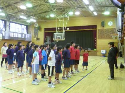 用賀小学校では課外のスポーツ教室として、バスケットボールをしています。もう十数年も続いている教室です。