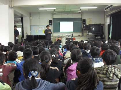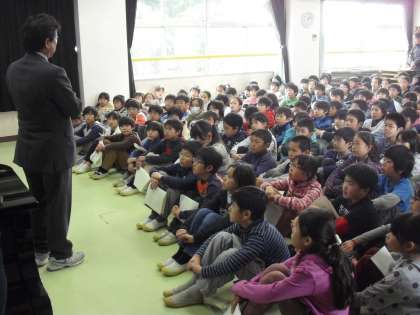 今日は5年生に、「3.11東日本大震災を忘れない」と題して授業を行いました。知人のご親族が被災された話や、巨大津波の写真、被災地の子どもの作文を用意して授業に臨みました。私の質問に対し、子どもたちはしっかり考え、自分の言葉で、次から次へと答えてくれました。「世界の人々」「絆」「これからも続ける」「あきらめてはいけない」などのキーワードがでてきました。人と人が本気になって支え合う、勇(優)気ある優しさををこれからも大切にしてほしいと思っています。最後には私のために、呼びかけでの言葉と歌のプレゼントがありました。一人一人が真剣なので感動で胸が熱くなりました。ありがとうございました。