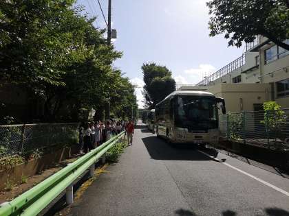 大勢の保護者の皆様と教職員でお見送りしました。行ってらっしゃい!