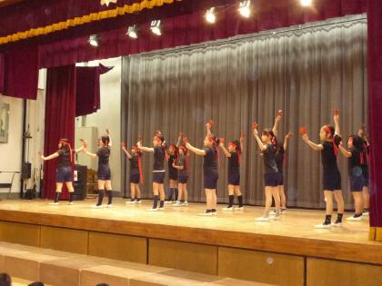 2/20 民舞クラブ発表 公開日 2009/02/20 更新日 2009/02/20 委員会・クラブ活動 今日の児童集会は、民舞クラブの発表です。沖縄エイサーの「めでたいさー」と「よさこいファイヤー」の演技です。1年間のクラブ活動の成果を全校児童の前で発表できました。踊っている子どもたちの満足そうな顔が印象的です。来年度のクラブでは、どんな踊りを見せてくれるのでしょうか。今から楽しみです。