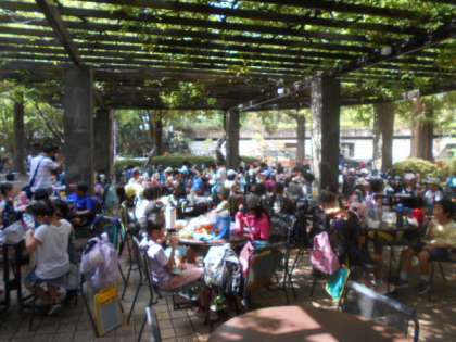 とても蒸し暑く、園内の徒歩での移動に疲れの色も見えましたが、藤棚の日陰の下で、お弁当&おやつタイムで充電し、午後の動物スケッチもマナー良く活動することができました。