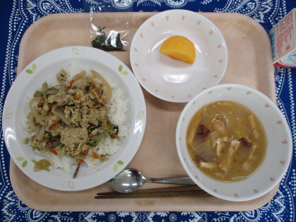 10/13(金) 本日の給食 公開日 2023/10/18 更新日 2023/10/18 給食 親子丼 牛乳 さつまいものみそ汁 平種無し柿 主な食材と産地 鶏肉 鹿児島県 たまご 青森県 にんじん 北海道 たまねぎ 北海道 ごぼう 青森県 みつば 埼玉県 さつまいも 茨城県 ねぎ 青森県 かき 奈良県