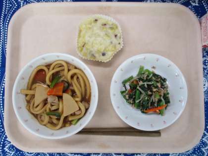 10/19(木) 本日の給食 公開日 2023/10/19 更新日 2023/10/19 給食 みそ煮込みうどん 牛乳 鬼まんじゅう 野菜ののり酢あえ 主な食材と産地 鶏肉 宮崎県 にんじん 北海道 ねぎ 青森県 さつまいも 千葉県 もやし 群馬県 こまつな 東京都