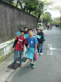 グループ行動開始です。源氏山に向けて、グループで協力して行動しています。