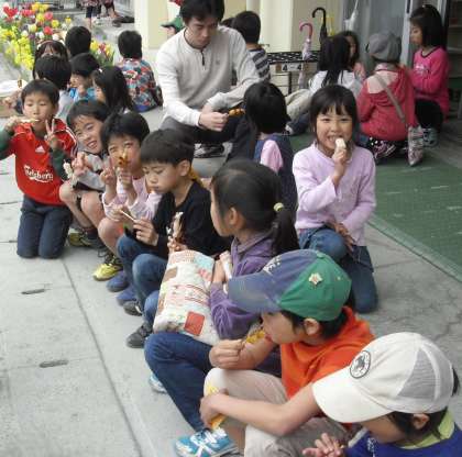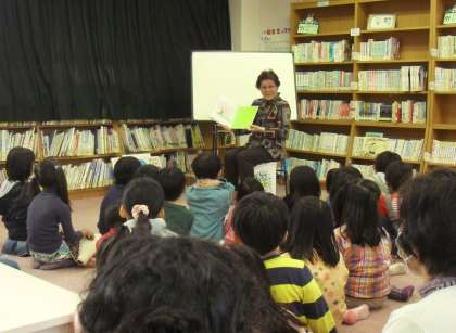 図書室には、用賀小学校第11代校長の土屋先生が来てくださり、子どもたちに読み聞かせをしてくださいました。今日のふれあい広場は、最後にお団子がふるまわれ、子どもたちはおいしそうに頬張っていました。