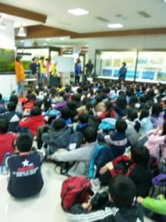 五年生 遠足 公開日 2012/04/23 更新日 2012/04/23 今日のできごと 予定より少し早く観音崎に着きました。学芸員の先生に海のお話を聞いて、このあと磯に出ます。少し雨が降っていますが、みんな元気です。