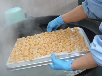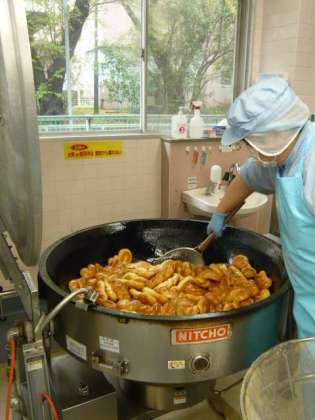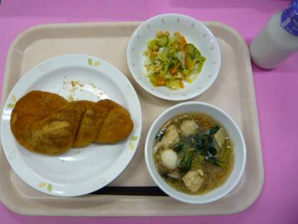 今日のスープは、肉団子入り春雨スープでした。スープは、鶏がらと豚骨を朝からことこと煮込んでとっています。そして、肉団子も調理員さんに1つ1つ丸めて作っていただきました。