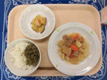 11/29(水) 本日の給食 公開日 2023/12/01 更新日 2023/12/08 給食 ごはん おからふりかけ 牛乳 豚肉と大根のうま煮 さつまいもとりんごの重ね煮 主な食材と産地 ぶたにく 群馬県 じゃこ 愛知県 じゃがいも 北海道 しょうが 高知県 にんじん 埼玉県 だいこん 千葉県 さつまいも 千葉県 紅玉 青森県