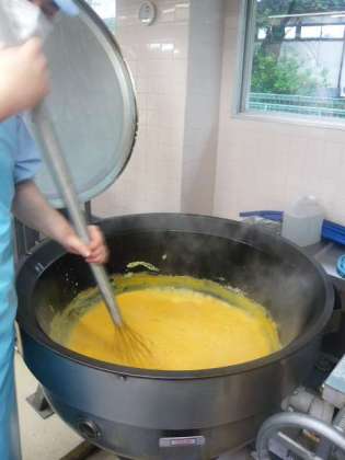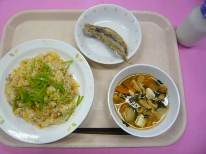 4/27 本日の給食 公開日 2012/04/27 更新日 2012/04/27 給食 〜今日の献立〜 そぼろごはん 牛乳 ししゃものからあげ みそ汁 今日の「そぼろごはん」には、炒り卵が入っていました。給食室では、大きな釜と大きな泡だて器を使って作ります。今日は、16Kgの卵を20分間かき混ぜて続けて作ってくださいました。おうちでは簡単に作ることができるものでも、850人分を作るのには時間と力が必要となります。 食材がとれたところ・・・ 閉じる 鶏ひき肉…岩手県 鶏卵…青森県 ししゃも…北欧 じゃがいも…北海道 しょうが…高知県 にんじん…徳島県 さやえんどう…静岡県 長ねぎ…埼玉県