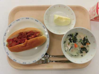 12/8(金) 本日の給食 公開日 2023/12/08 更新日 2023/12/08 給食 セルフウインナーサンド 牛乳 ほうれん草のクリームスープ 王林 主な食材と産地 とりにく 岩手県 にんにく 青森県 たまねぎ 北海道 ピーマン 茨城県 にんじん 千葉県 ほうれんそう 東京都八王子市 しめじ 長野県 王林 青森県