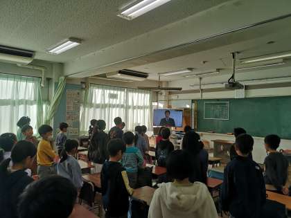 生活指導主任の先生からは、ペープサートを用いながら交通安全についてお話がありました。年末年始は交通事故が多くなります。「自分は大丈夫」と思わず、気を付けてほしいと思います。大人は、安全のために繰り返し注意喚起をしていきたいものです。