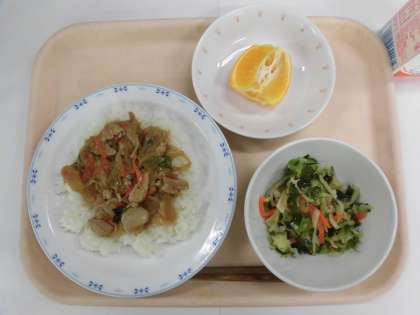 1/18(木) 本日の給食 公開日 2024/01/19 更新日 2024/01/19 給食 おろし豚丼 牛乳 和風サラダ いよかん 主な食材と産地 ぶたにく 青森県 にんにく 青森県 たまねぎ 北海道 にんじん 千葉県 もやし 栃木県 ばんのうねぎ 福岡県 だいこん 神奈川県 しそ 愛知県 きゃべつ 愛知県 きゅうり 宮崎県 いよかん 愛媛県