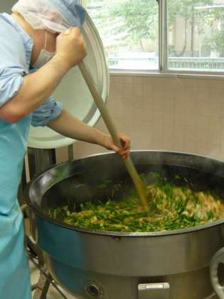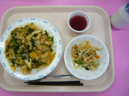 今日は、韓国の料理「ダッカルビ丼」を出してみました。ダッカルビは、鶏肉と野菜を炒めて、コチュジャンという韓国の調味料で味をつけます。初めて出したメニューでしたが、「おいしかった」という声をたくさん聞けたのでとてもうれしかったです。
