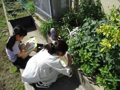 春の草花のついての学習です。 虫めがねを手に注意深く観察し、記録していました〜