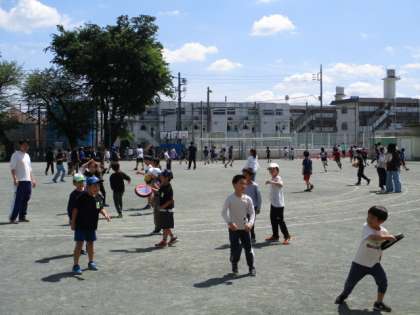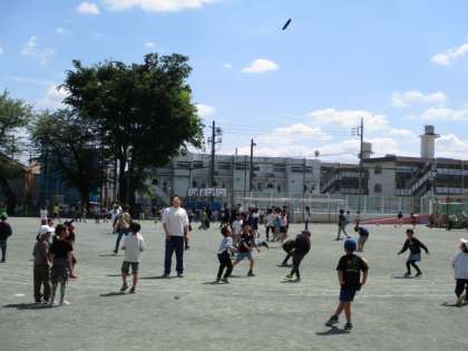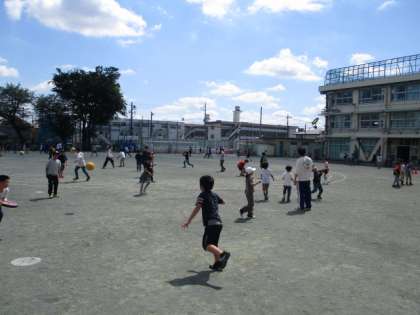 天気の良い昼休み〜 子どもたちは校庭で遊びを楽しんでいます〜