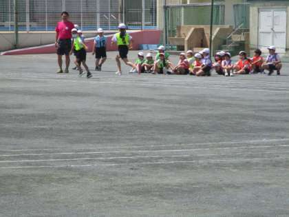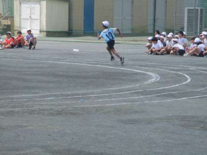 かけっこ、リレーでは、調子よく走ったりバトンバスの受け渡しについて学習します。