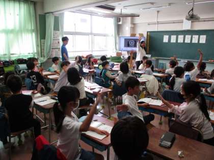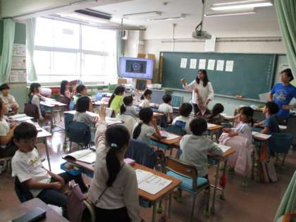 外国語活動〜3年 公開日 2024/05/07 更新日 2024/05/07 今日のできごと 担任の先生とALTの先生と一緒に外国語活動です。 中学年の外国語活動では、日本語と外国語の違いに気付いたり、基本的な表現に慣れ親しんだりと、コミュニケーションを図る素地を育成することを目的としています・・・ 楽しく活動中でしたね・・・・