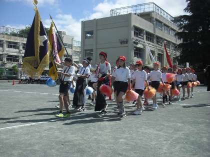 今日は開会式、午後の応援合戦の練習を中心にしました。『パワー全開 チーム用賀!』のスローガン通り、練習においても常に全力、パワー全開です。手抜きをしない子どもたちは本当に素敵です。入場行進、優勝旗、準優勝杯返還の練習をしましたが、司会進行は児童会運営委員の児童がマイクをもっての練習です。声も大きく、はきはきとした司会ぶりで、さすが児童会代表です。練習時間をたくさん取ることはできませんから、一回一回の練習に真剣に取り組んでいます。音楽委員会、ようがキッズバンドの演奏もとっても上手です。