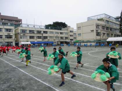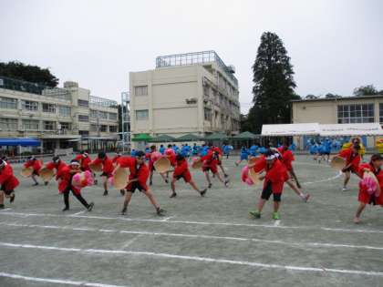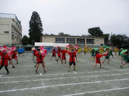 4年生の表現の練習です。 当日の衣装を身に付けて、花笠を上手に回転させるなどして踊っていました〜