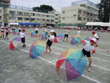 カラフルな傘を上げたり下げたり回転したり・・・と、