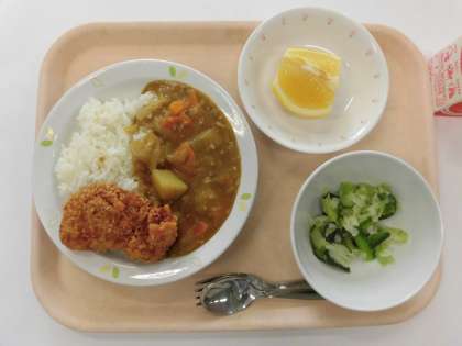 5/24(金) 本日の給食 公開日 2024/05/24 更新日 2024/05/24 給食 チキンカツカレー グリーンサラダ 美生柑 牛乳 明日はいよいよ運動会です。 勝てるようにカツカレーを出しました。 朝ごはんをしっかり食べてから登校し、 練習の成果を発揮できるように頑張ってください。