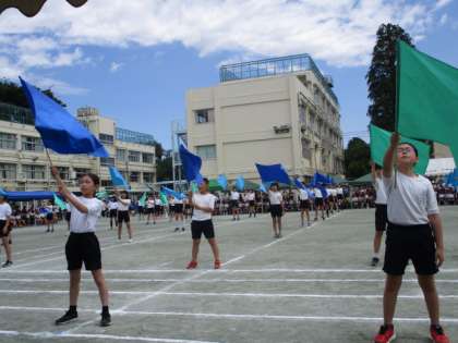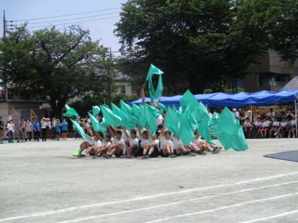 6年生の表現です。 小学校最後の運動会、旗をなひかせ心を一つにして、自分たちの表現を皆で創り上げました〜