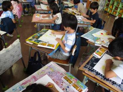 楽しかった運動会の場面を思い出し、画用紙に描く活動に取り組みました〜