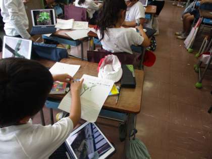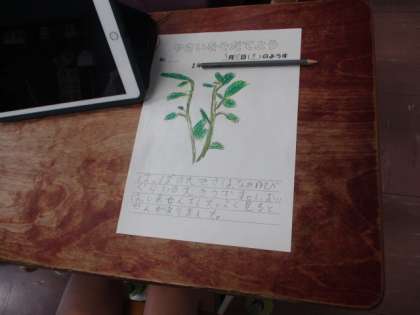 野菜を育てている2年生・・・ 成長の記録や気付きを観察カードや写真に残していました〜