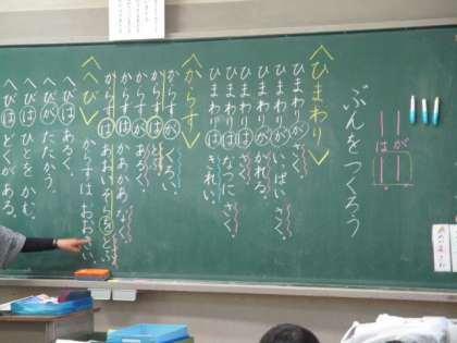 文をつくろう〜1年 公開日 2024/06/03 更新日 2024/06/03 今日のできごと 文の中の主語と述語の関係についての学習です。 語と語の続き方に注意しながら文を書いたり読んだりする活動に取り組みました〜