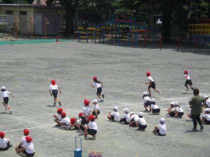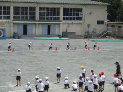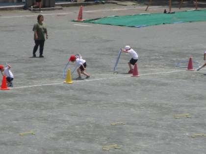 走の運動遊び〜1年 公開日 2024/06/03 更新日 2024/06/03 今日のできごと 走の運動遊びの学習です。 小ハードルを飛び越えたり、輪をくぐったりしながら、リレー形式での活動に取り組んでいました〜