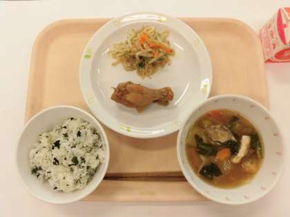 わかめごはん 鶏手羽のさっぱり煮 ごま酢かけ 具だくさんみそ汁 牛乳
