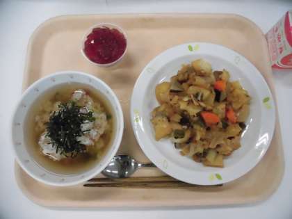 梅茶漬け 揚げ煮 あじさいゼリー 牛乳