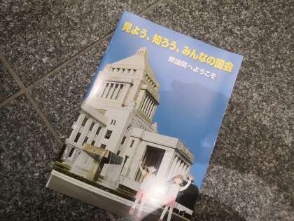 いよいよ衆議院の見学です。通行証代わりのパンフレットをいただきました。