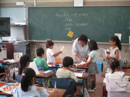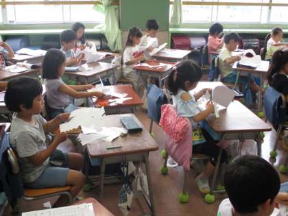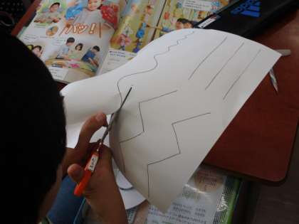はさみを使って様々な線を切る活動です。 コツをつかみながら上手に切り取っていました〜