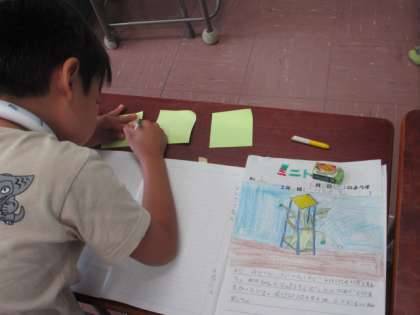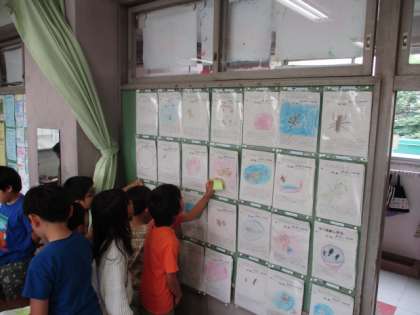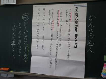 書いた観察記録文を友達と読み合い、互いの文紹運おいところを伝え合う国語の活動です。