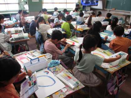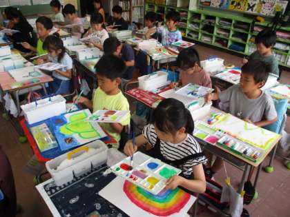 えのぐじま〜2年 公開日 2024/06/13 更新日 2024/06/13 今日のできごと 図工の絵の具で描くことを楽しみながら、表したい形や色を考え、工夫して表す活動です。 筆の太さ、色使いなども考えながらそれぞれの作品づくりに取り組んでいました〜