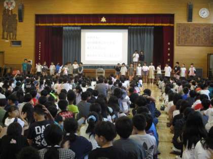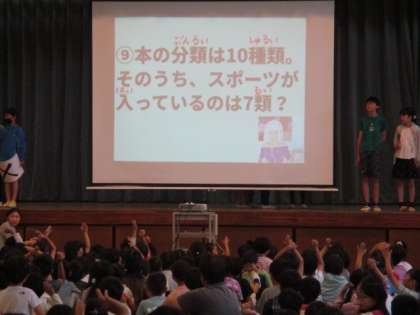 児童集会〜 公開日 2024/06/18 更新日 2024/06/18 今日のできごと 体育館に参集し、図書委員騎亜の発表集会を行いました。 図書室に関係のある問題にみんなで挑戦しました〜 さあ、何問正解できたでしょうか・・・・・