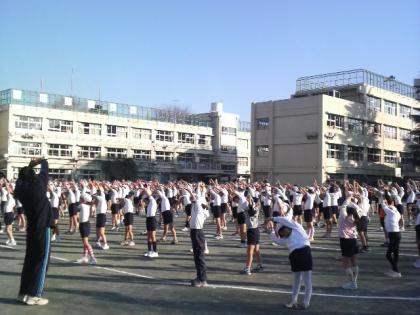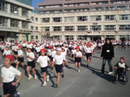 今日は、天気もよくポカポカと暖かい日です。全校の皆で気持ちよく走りました。