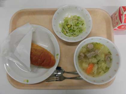 きなこあげパン ポトフ バジルチーズサラダ 牛乳