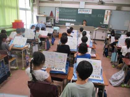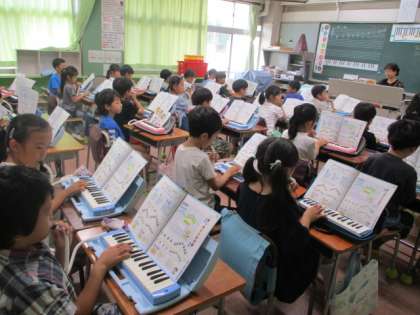 鍵盤ハーモニカのお稽古です。 指遣いに気を付けながら、みんなで演奏しました〜