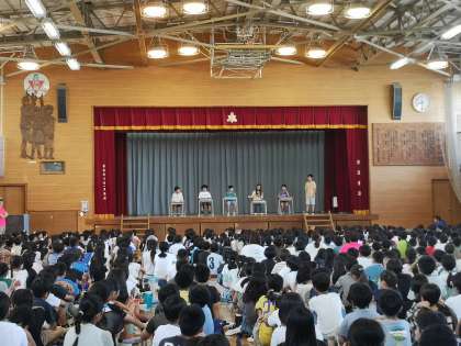 七夕集会 公開日 2024/07/04 更新日 2024/07/04 今日のできごと 集会委員が七夕にまつわるクイズを楽しく出題しました。また、各クラスのお願い事を、発表しました。クラスが発表するたびに拍手が起きました。