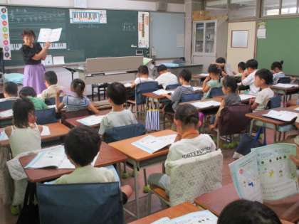 曲想を感じ取って〜1年 公開日 2024/07/05 更新日 2024/07/05 今日のできごと 1年生の音楽の学習です。 今日の学びの目当てを確認してから範唱を聞き、どのように歌うのか、思いをもって学びが進んでいました〜
