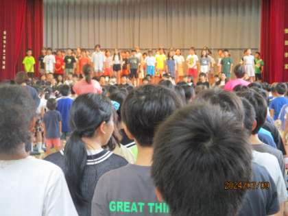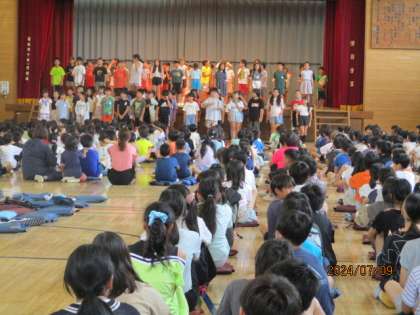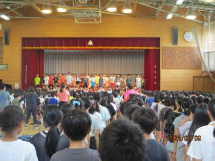 体育館に全校で参集し、音楽朝会を開きました。