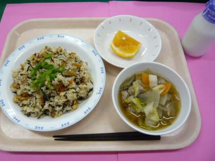 5/31 本日の給食 公開日 2012/05/31 更新日 2012/05/31 給食 〜今日の献立〜 豆入りひじきごはん 牛乳 とびうおのつみれ汁 くだもの(甘夏みかん) 今日のつみれ汁には、「とびうお」を使いました。今日は、東京都の八丈島でとれたものを使いました。 写真は、つみれ汁の温度をはかっているところです。給食では、必ず75度1分以上加熱したことを確認します。 食材がとれたところ・・・ 閉じる 鶏肉…徳島県 とびうお…東京都(八丈島) にんじん…徳島県 ごぼう…青森県 さやいんげん…千葉県 しょうが…高知県 長ねぎ…茨城県 だいこん…千葉県 はくさい…長野県 甘夏みかん…愛媛県