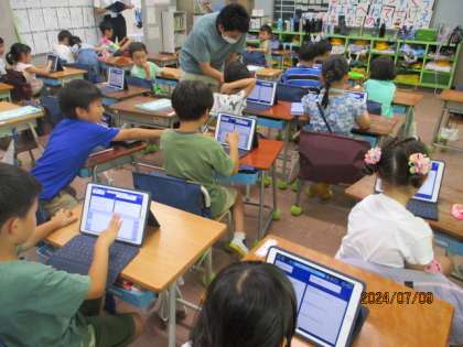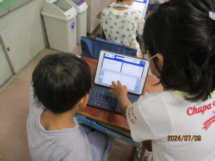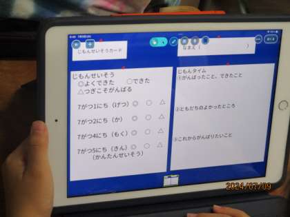 タブレットを使って、清掃活動などの日々の活動についての振り返りをしました〜