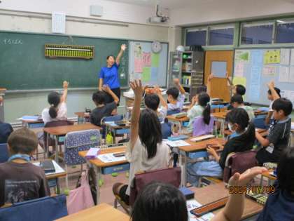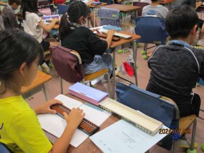 そろばんの学習です。 簡単なたし算ひき算に挑戦しました〜