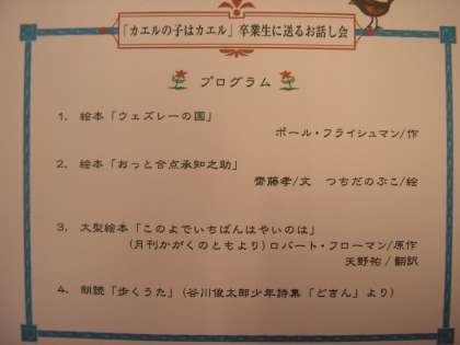 「カエルの子はカエル」の皆様が、卒業生へのプレゼント“「カエルの子はカエル」卒業生に贈るお話し会”を開いてくださいました。
