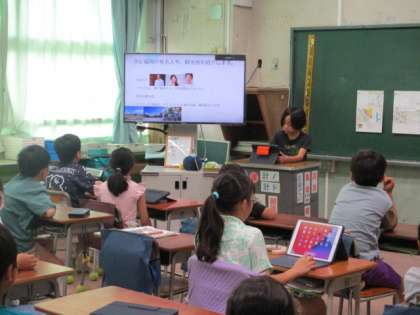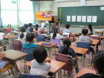 総合的な学習の時間を使って調べまとめてきたことを、皆の前で発表していました〜